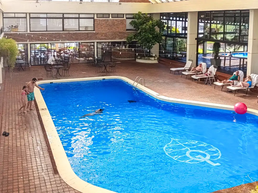 Las Termas de Salto Grande, son en realidad, por un lado un Parque Acuatico –con hermosas instalaciones, por cierto- y por el otro el Hotel & Spa Termal Horacio Quiroga, un hotel exclusivo, que tiene piletas termales para sus huéspedes y para quienes quieran pasar el día con un day pass.